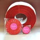 大巻は工場で作りたての紙バンドをまだ熱い状態で粗く巻いたものなので、ある程度の巻癖が付いてしまいます。30m巻や5m巻はこの大巻からしっかりと巻癖を伸ばし、糊ムラや裂け等の部分を出来るだけ排除し商品としています。大巻はこの巻癖を伸ばす工程や不良部分の排除がない分、大変お安くご提供させていただいております。